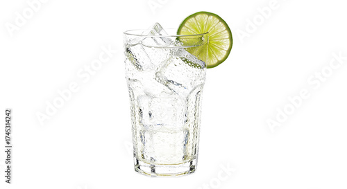 Refreshing gin and tonic with ice and lime drink on transparent background