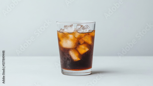 Refreshing glass of soda with ice cubes, perfect for hot day
