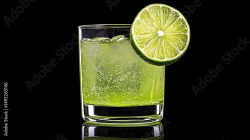 Refreshing Green Lime Drink with Ice in Rocks Glass