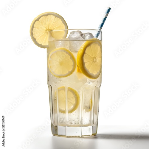 lemonade, ice cube, cold drink, beverage, citrous, yellow, glasses, straw, cocktail, water, ice, cool, summer, fresh, healthy, vitamin, drink, glassware, white background, isolated, food photography, closeup