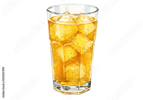 beverage, drink, cocktail, glasses, ice, ice cube, bubble, refreshing, watercolor, illustration, painting, autumn, fall, season, food, menu, receipe, graphic, design element, template, background, texture, vibrant, yellow, gold, delicious, tasty, healthy, organic, natural, transparent, studio shot, isolated, white background, digital artwork, artwork, image, photo