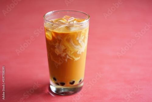 Refreshing Iced Tea with Milk and Tapioca Pearls