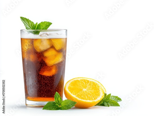 Refreshing iced tea with zest of lemon summertime delight in glass cool