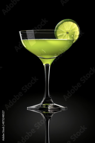 cocktail, lime, garnish, drink, beverage, green, dark background, refreshing, citrous, lime slice, cocktail glass, bar, summer, alcoholic, elegant, sophisticated, crisp, closeup, isolated, delicious, juicy, nightlife, celebration, lime green, fresh, vibrant, stylish, party