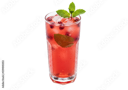 Refreshing red beverage with mint leaves and ice in a clear glass