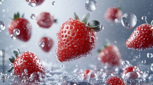 Refreshing strawberry drink dessert with red fruit splash kitchen high-quality image bright environment