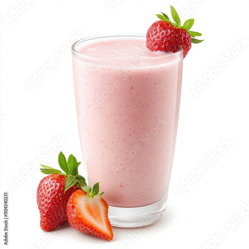 Refreshing strawberry smoothie in a glass with fresh strawberries. isolated on white background.