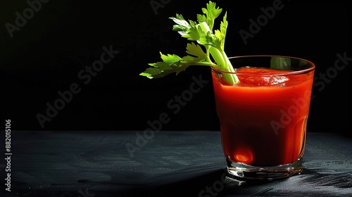 Refreshing Tomato Juice with Celery Sprig in High Contrast, Vibrant Color Enhancement