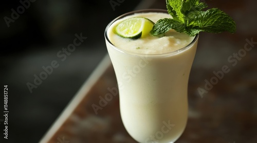 Refreshing Tropical Smoothie with Lime and Mint Garnish
