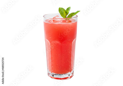 watermelon, juice, drink, beverage, cocktail, refreshing, fruit juice, mint, garnish, glasses, ice, summer, fruit, red, delicious, tasty, food photography, studio shot, white background, isolated, closeup, vibrant, quenching