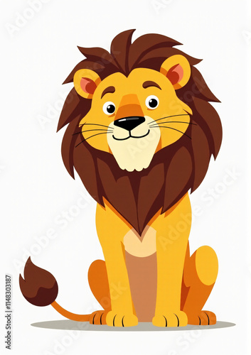 Regal Lion in Jungle, Stylized 2D Vector Art on White Background