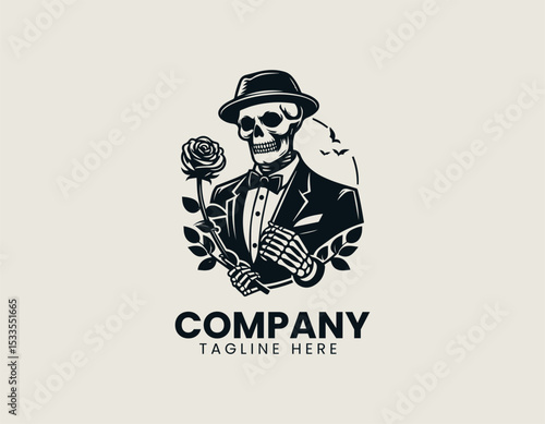 Regal Skull King and Flower Dark Fantasy Floral Crown Vector Logo Design