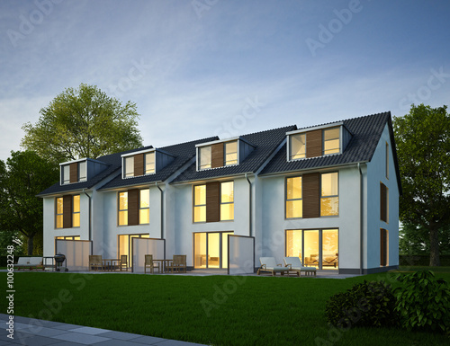 architecture, build, lighting, home, prefab, evening scene, evening, garden, building, house, house-building, heaven, forest, real estate, light, new construction, plant, in plaster, grass, row house, sun, stream, villa, white, live, house, cloud, home