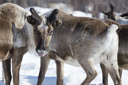 reindeer, spring, snow, solar, sunny, april, cervid, herd, aggregate, heat