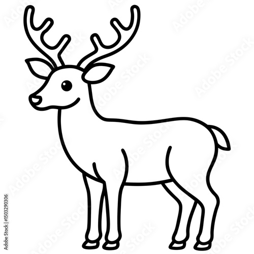 Reindeer with antlers line drawing line art vector illustration