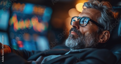 Relaxed Investor Analyzing Stock Market Trends and Opportunities