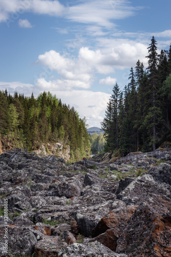 rock, stone, ore, grey, copper, blue, forest, tree, plant, green, hill, sky, day, summer, vacation, sweden, jamtland, cloud, white