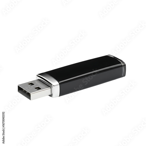 Rendered image of a sleek, modern flash drive on a blank backdrop isolated on transparent background
