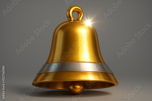 bell, ringing, metallic, shiny, gold, silver, metal, notification, celebration, alarm, alert, call, rendering, object, isolated, background, single, design, symbol, graphic, glossy, bright, hanging, decoration, decorative, classic, vintage, sound, announce, grey, grey background, minimalist, studio shot, digital artwork, computer graphic, concept, illustration, art, still life, closeup, design element