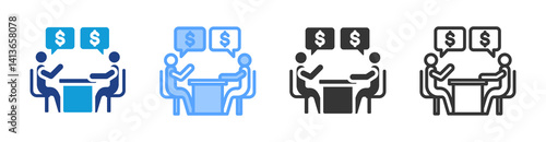 negotiation, discussion, money, consulting, bargaining, advisory, consultation, salary, financial, business, icon, outline, line, lineal, illustration, glyphs, black, blue, blueprint