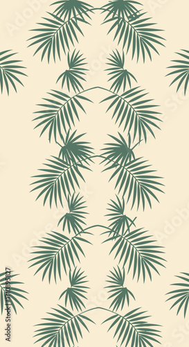 palm frond, tropical, pattern, repeating, symmetric, green, cream, beige, nature, foliage, leaf, plant, botanical, organic, texture, background, design, graphic, decorative, abstract, minimalist, elegant, simple, clean, natural, growth, fresh, vibrant, lush, exotic, summer, vacation, holiday, travel, decor, wallpaper, textile, surface, art, illustration, graphic design, vector, seamless, repeat, ornamental, flora
