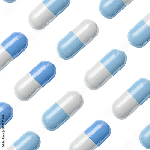 capsule, pill, medicine, drug, health, pharmaceutical, medicals, treatment, medication, therapy, drug, pharmaceutical, oval, shape, blue, white, two-tone, pattern, repeating, design, graphic, illustration, three-dimensional, realistic, digital, image, health care, care, prevention, make well, relief, pain, disease, disease, protection, safety, dosage, prescription, container, cardboard box, pharmacy, visual