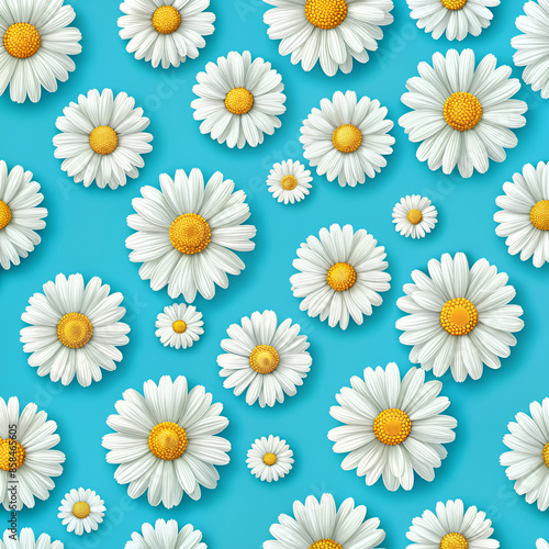 Repeating white daisies on blue backdrop, great for botanythemed textiles