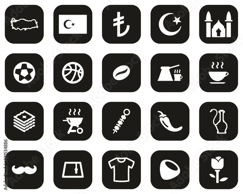 Republic Of Turkey Country & Culture Icons White On Black Flat Design Set Big