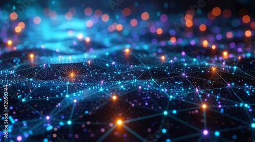 "Réseau de points lumineux sur fond sombre, représentation abstraite de la connectivité, de la technologie ou du cosmos."