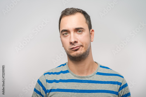 man, shirt, white, expression, male, portrait, young, angry, rancor, anger, fat, understand, hand, unshaved, fun, boy, frown, conflict, people, caucasian, eye, cute, funny, fear, shock, surprise, nice, look, understanding, face, kind, peach, person, bruised, resent, incomprehension, hair, emotion, doubt, cheerful, background, news, difficult, worry, piercing, annoyance, annoyed, at, bearded, camera