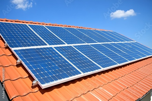 Residential House with Rooftop Solar Panels for Sustainable Electricity Generation on a Sunny Day.