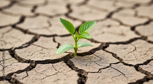 Resilient Green Plant Sprouting from Dry Cracked Earth. Symbol of Hope, New Life, and Growth in Adversity.