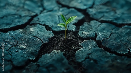 germinating, plant, germ bud, growth, earth, dirtied, fractured, cracked, dry, arid, drought, desert, resilience, nature, environment, survival, life, hope, fragility, vulnerability, strength, tenacity, perseverance, challenge, change, future, sustainability, ecology, agriculture, farming, land, global, warming, climate, crisis, conservation, preservation, green, leaf, leaf, root, dark, texture, background, detail, closeup, macro