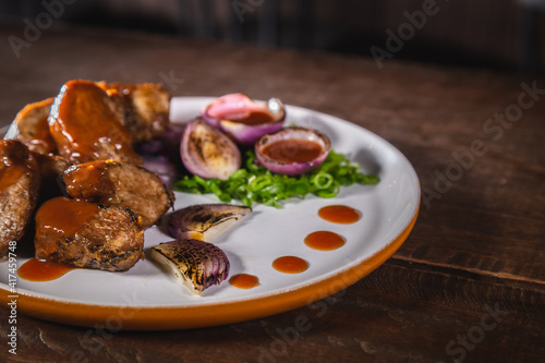 food, meat, meal, dinner, plate, dish, salad, epicure, sauce, chicken, eatery, cookery, vegetable, vegetable, delicious, pork meat, lunch, healthy, roasted, beef, tomatoes, green, white, seafood