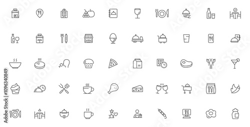 Restaurant related icons. Set Vector Line Icons of Restaurant Business vector icon set, black and white kit