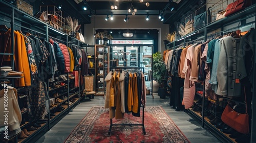 Retail Fashion Store Interior with Clothing Display