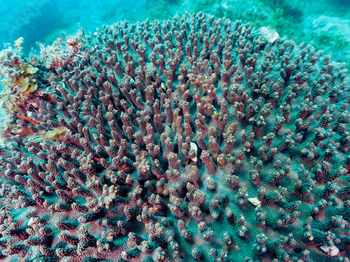テーブルサンゴに住む可愛いフタスジリュウキュウスズメダイ、ミツボシクロスズメダイ(スズメダイ科)、ヤリカタギ(チョウチョウウオ科)の幼魚他。 英名、学名: Reticulated Dascyllus (Dascyllus reticulatus) Chevron Butterflyfish (Chaetodon trifascialis) Threespot dascyllus ヒリゾ浜2024
