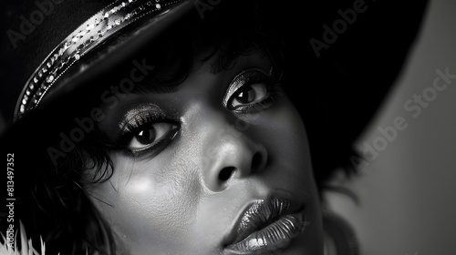 Retrato en blanco y negro de mujer transgenero con sombrero