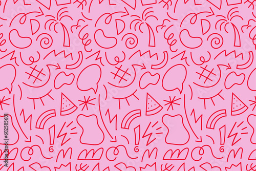 Retro 80's - 90's memphis seamless pattern with hand drawn doodle elements. Vector illustration.