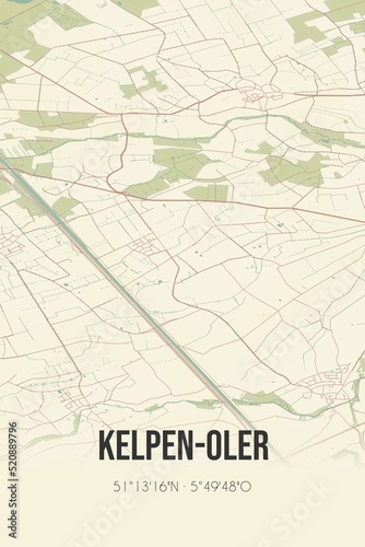 Retro Dutch city map of Kelpen-Oler located in Limburg. Vintage street map.