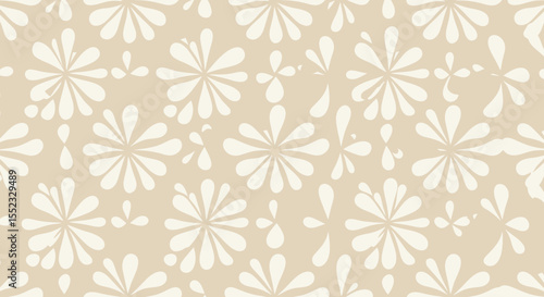 Retro floral pattern with stylized flowers in beige and white color scheme