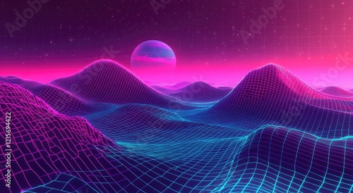 80s, retro, futuristic, landscape, digital, art, wallpaper, background, desktop, planet, neon, grid, wireframe, aesthetic, design, graphic, illustration, print, poster, artwork, image, photo, vintage, stylish, cool, modern, trendy, download, buy, purchase, hi-res, vector, pixel, resolution, quality