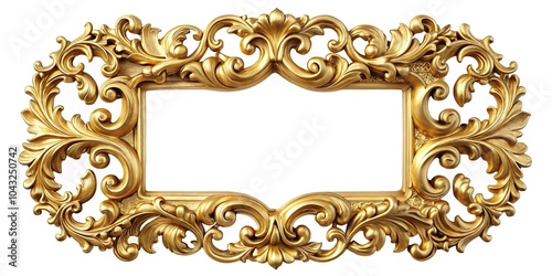 retro, gold, mirror, frame, baroque, style, isolated, white