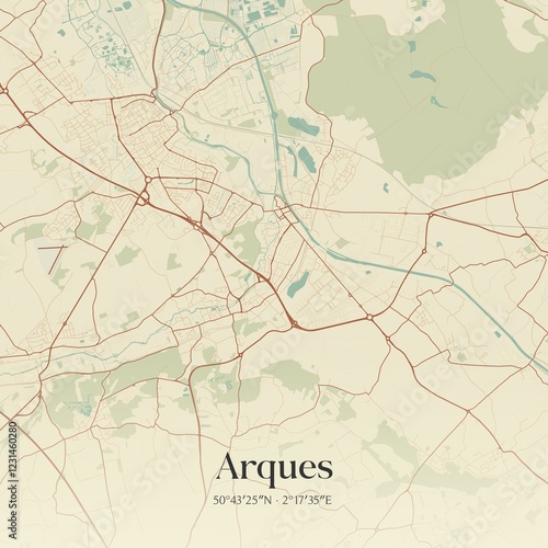 Retro map of Arques, Hauts-de-France, France. Vintage street map.