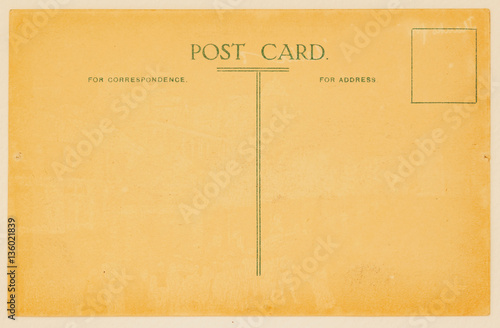 Retro postal card for placing messages and addresses. Backside. Paper texture. With place your text, background use. Concept collecting as a hobby, business