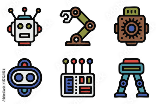 robot, robot, icon, icon, bot, vintage, retro, technology, robotic, automation, machinery, machine, industrial, digital, art, design, illustration, graphic, vector, colourful, cute, character, cartoon, futuristic, science, fiction, engineering, mechanical, electronic, gear, contraption, device, element, set, collection, aesthetic, style, graphic, symbol, signs, clip art, pixel, artwork, pattern, colourful