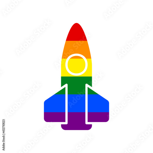 Retro Rocket sign illustration. Rainbow gay LGBT rights colored Icon at white Background. Illustration.