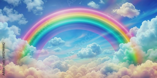 Retro sky pattern with fluffy clouds and rainbow colors, retro, sky, pattern, clouds, rainbow, vintage, colorful, design