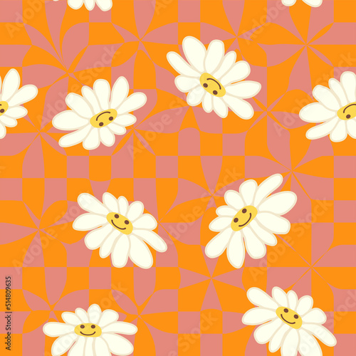 pattern, chamomile, 70s, face, retro, seamless, primitive, flower child, 70s, swirl, orange, liquid, 1970, fun, groovy, wavy, grid, vector, aesthetic, smile, wallpaper, flat, pink, design, style, vintage, variation, fabric, yellow, poster, distorted, background, naive, abstract, artwork, lavandula, fantasy, decor, motto, element, colours, cover