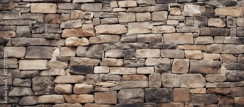 Retro stonewall background with old stone wall texture, rock blocks, ancient bricks fence, and a brickwork exterior mockup with copy space image.